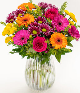 Sweet Spring contains a mix of pink and orange germini, spray chrysanthemums complemented by a cerise rose that takes centre stage in this bouquet. Sent in a protective Eflorist box, this bouquet arrives in bud to ensure lasting freshness for the lucky recipient. With just a splash of water and our included flower food, the blooms will gracefully open up within two days. And with tracked delivery, you can relax knowing exactly when your surprise is delivered. These flowers are a great inexpensive way to brighten up every occasion.